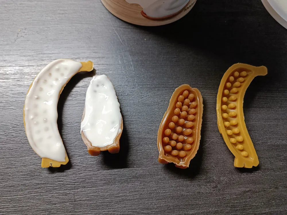 Das Tolle – einige der Snacks haben ein schalenförmiges genopptes Design und eignen sich richtig toll als Mini-Schleckmatten oder Schälchen für selbstgemachtes Hunde-Eis im Sommer.