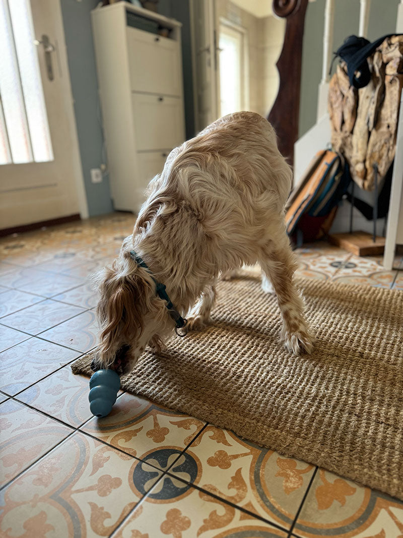 Anstatt deinem Hund sein Futter einfach im Napf zu servieren, verwandle es in ein kleines Abenteuer! Nutze Schnüffelteppiche, Futterbälle oder Kongs, um das Fressen spannender zu gestalten. Das dauert nicht länger als ein paar Sekunden in der Vorbereitung, beschäftigt deinen Hund aber deutlich länger.
