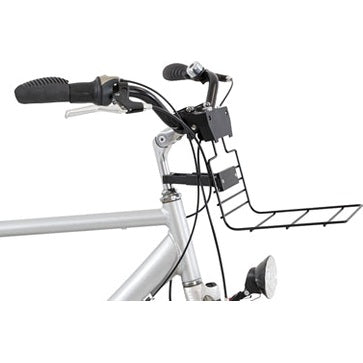 - Die Halterung wird um den Lenker geklemmt, danach können Sie den Korb auf den Rahmen setzen